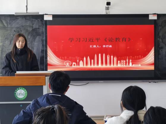 徐子媛同志首先带领大家走进《论教育》的广阔视野,该书汇集了习近平总书记自2013年5月至2024年7月期间关于教育的重要论述共计47篇,全面展现了新时代中国教育的指导思想和发展蓝图。她细致梳理了书中的关键篇目与核心思想,如教育的公平与质量并重、创新驱动发展战略下的教育改革等,为党员同志们勾勒出一幅教育强国的宏伟蓝图。李抒函同志基于“三个坚持”剖析了习近平总书记教育思想的理论与实践价值,她提到,结合《论教育》与全国教育大会精神,是深化理论、指导实践的关键。要深刻领悟“两个确立”,增强“四个意识”、坚定“四个自信”、做到“两个维护”,坚定走中国特色社会主义教育发展道路,以教育促进人民幸福与国家富强,共筑教育强国新篇章。