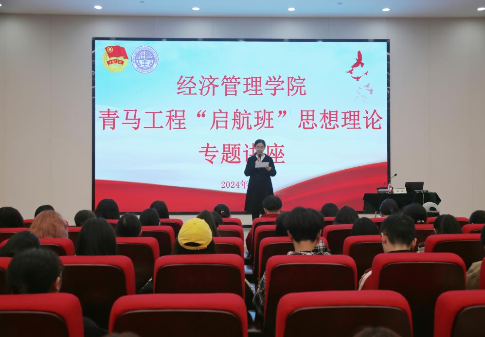 为深入学习贯彻党的二十届三中全会精神,全面加强对青年的思想政治引领,2024年10月24日下午,经济管理学院第一期青马工程大学生骨干培训班“启航班”在淄博校区文法西楼报告厅开展了“党的二十届三中全会精神”专题培训。本次培训由我院马克思主义学院孙璠老师主讲,培训班全体学员参与。
