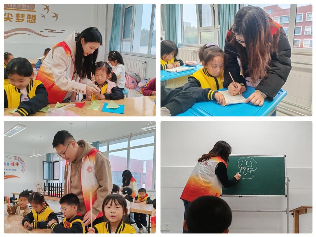 团员青年们秉承“爱心传承,智慧传递”的理念,充分发挥自身优势,分为书法、绘画、折纸和花灯四个小组,为孩子们带来了形式多样、内容丰富的课程。课堂上,团员们运用生动有趣的讲解和互动,充分激发了孩子们的学习热情和兴趣,让艺术的种子在孩子们的心中生根发芽,他们用实际行动践行着青春的誓言。