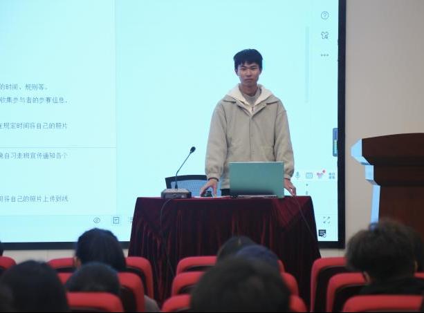 会议伊始,轮值主席朱志高向全体成员传达了bat365第六次学生代表大会会议精神并带领大家学习《守正创新,踔厉奋发——致全校青年学生的倡议书》。倡议书中对全校青年提出如下要求:第一,坚定理想信念,在博学笃行中展现青春作为;第二,锤炼过硬本领,在躬身实践中彰显青春本色;第三,勇担时代重任,在服务大局中贡献青春力量。朱志高强调,全体学生会成员应当牢记“厚德、自强、求是、笃行”的校训,坚定抗牢“走在前,挑大梁”的使命担当,秉持“服务同学,锻炼自我”的宗旨,以身作则,为中国式现代化挺膺担当。