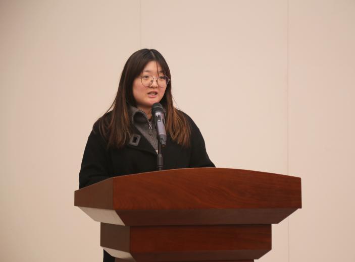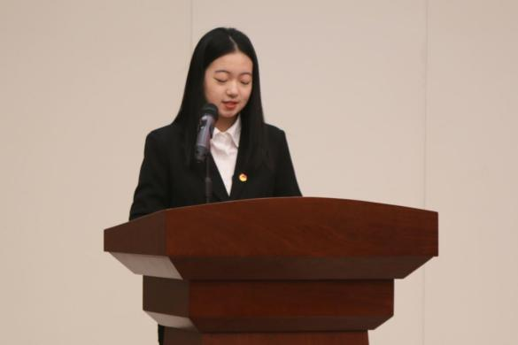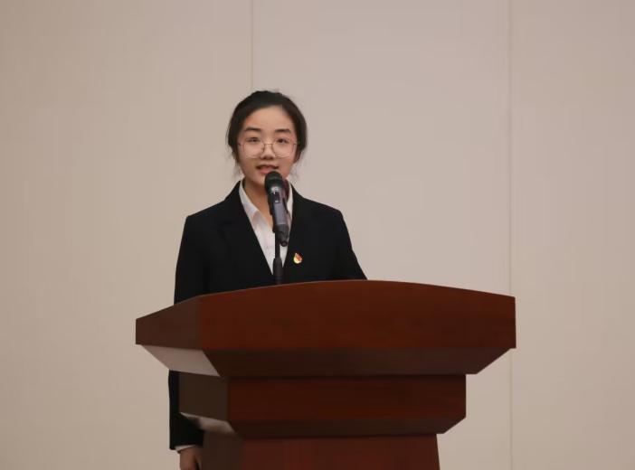 随后,第一期青马学员代表王韵茹进行发言,她回顾青马班学习经历,强调青年应坚定理想、磨炼心性,勇立潮头作表率。