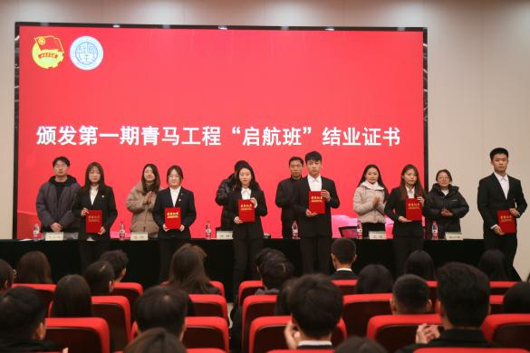 经济管理学院思想政治辅导员李娜宣读了第一期青马工程“启航班”结业学员名单,与会领导、老师为第一期青马学员代表颁发结业证书。