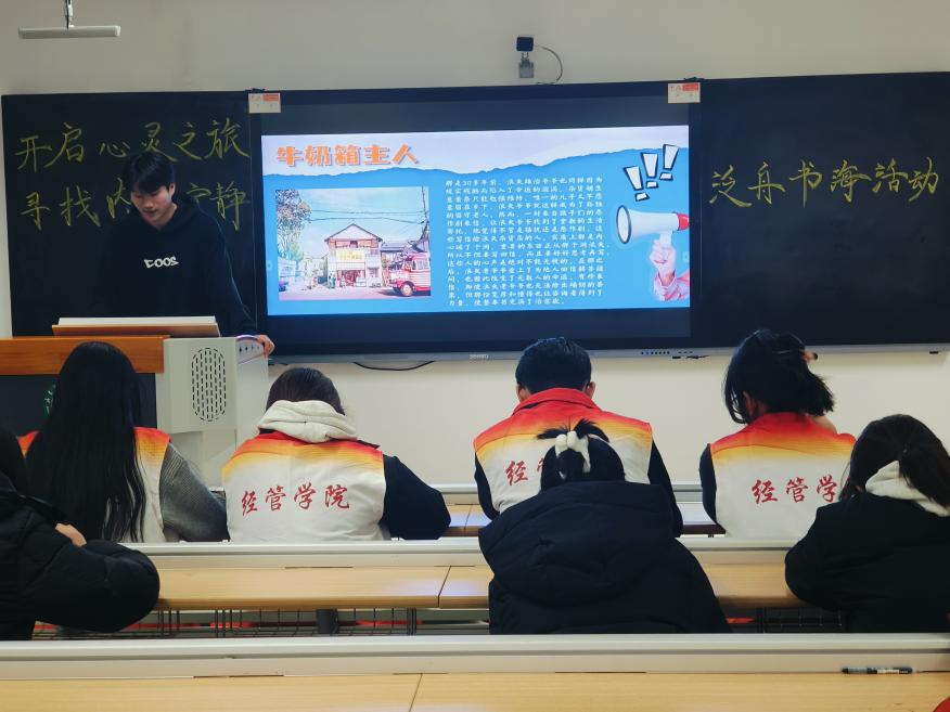 阅读引发共鸣,书香陪伴旅途。经济管理学院于2024年12月9日下午,在文法西楼A312教室举办“开启心灵之旅,寻找内心宁静”泛舟书海读书分享会活动。