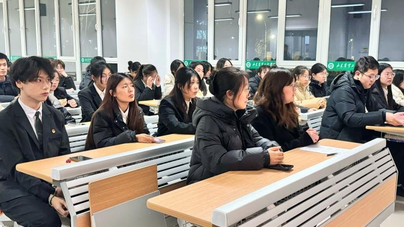 为进一步团结广大团员和青年,坚定理想信念,增强团员责任感和使命感,2024年12月17日,经济管理学院于文法西楼B105教室举行2024年下半年新发展团员入团仪式,我院思想政治辅导员李娜、侯沁菲以及2024年下半年全体新发展团员参与此次仪式。
