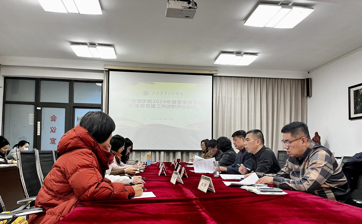 2025年1月20日下午,经济管理学院2024年度党支部书记抓基层党建工作述职评议会议在济南第二会议室召开。党总支书记马勇主持会议,学校列席旁听工作组牛化振、赵阳列席旁听。党总支全体领导班子成员出席会议,各党支部书记、副书记、委员参加会议。