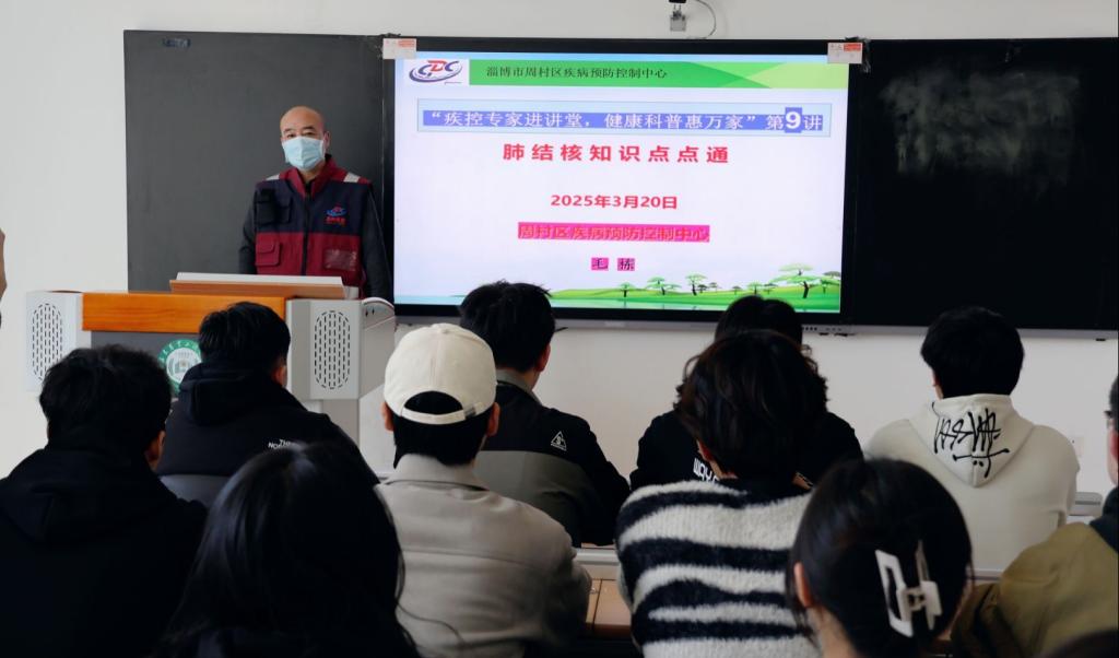 讲座中,周村区疾病预防控制中心副主任医师、结核病艾滋病防制科科长毛栋结合案例向师生讲解结核病的概念、传播途径、预防措施、治疗方案及国家相关免费政策等健康知识,同时提醒大家要养成良好的卫生习惯、开窗通风,加强体育锻炼,提高自身免疫能力。