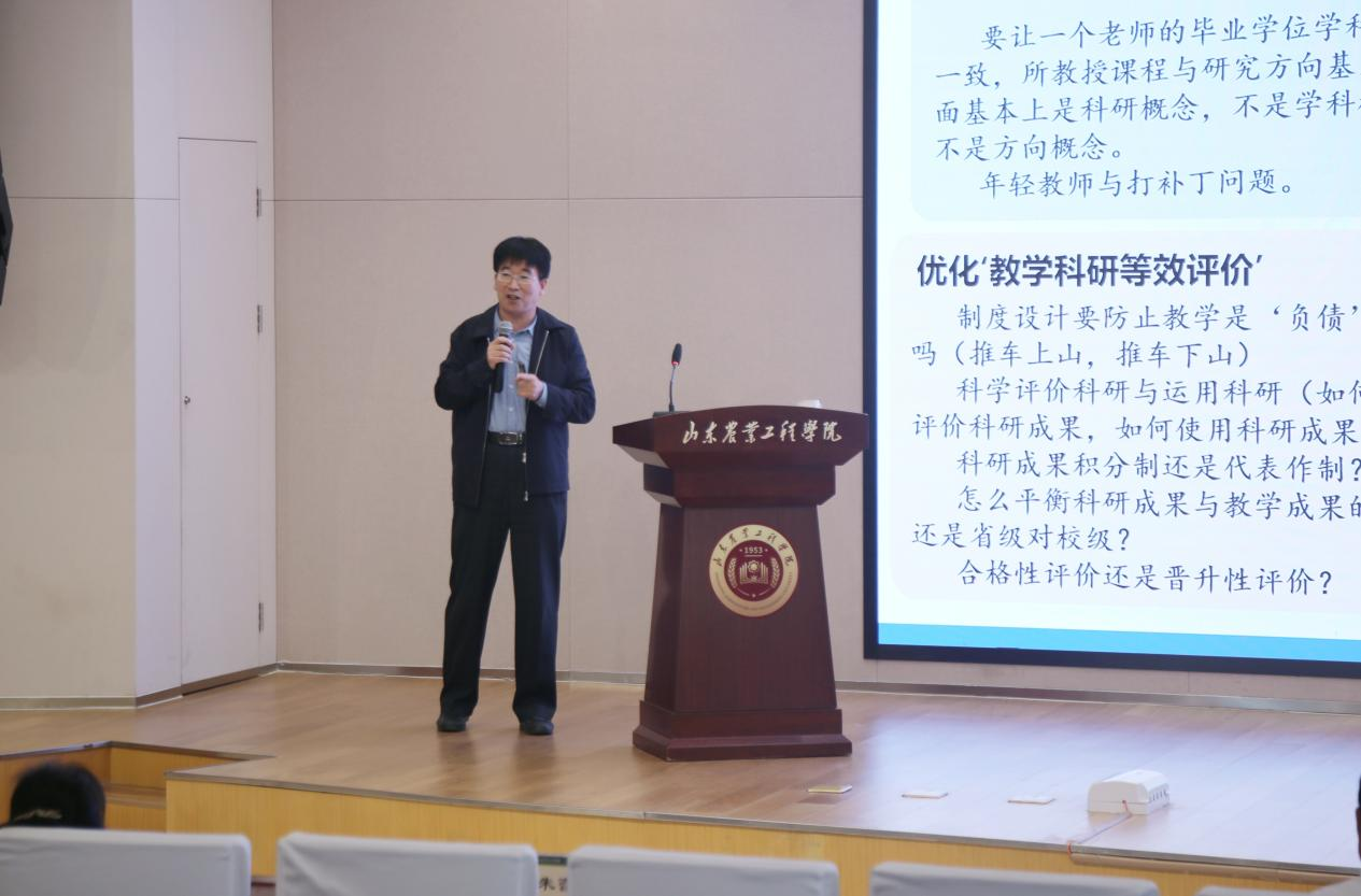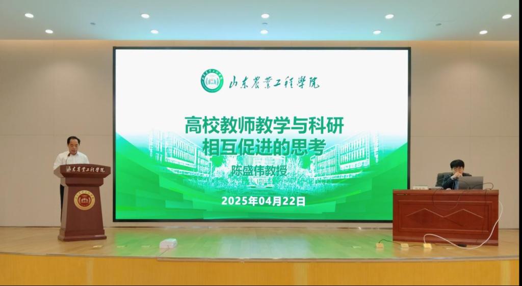 2025 年 4 月 22 日下午,山东理工大学党委常委、副校长陈盛伟教授受邀莅临bat365淄博校区,为bat365教师带来了一场题为《高校教师教学与科研相互促进的思考》的学术报告。本次报告由bat365正版唯一官网校长李进京主持,bat365 200余名教师到场聆听。