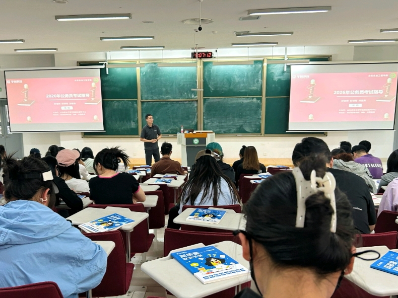 公务员考试为就业提供稳定保障,也是服务社会、实现价值的重要途径。近期,我院联合华图教育在淄公南楼B102教室开展了公务员考试指导讲座。