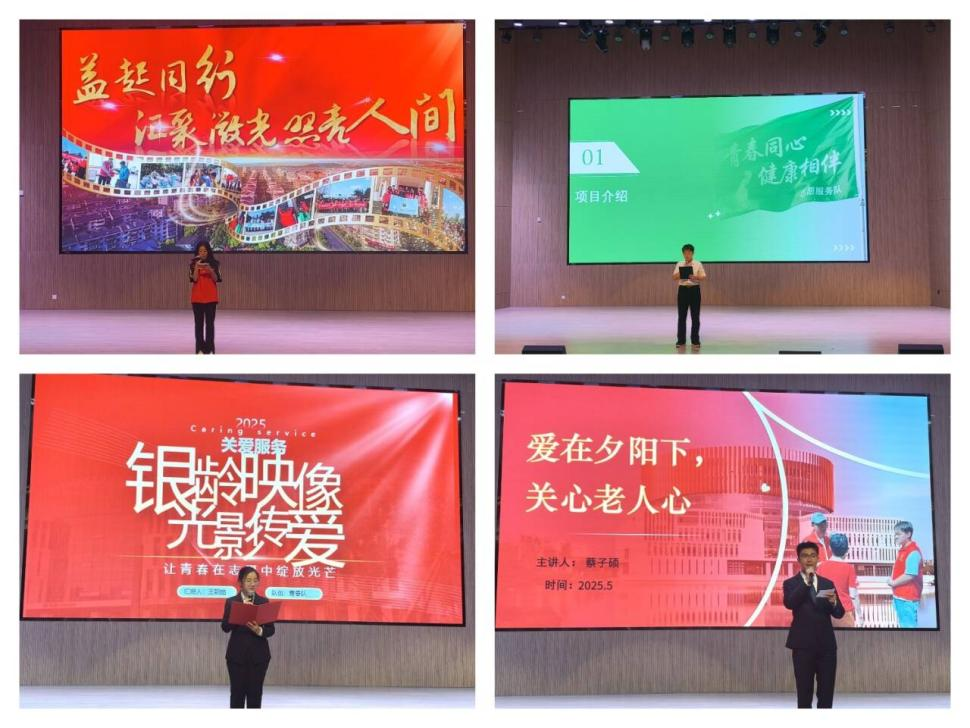 经过严格初审,12个项目从众多申报项目中脱颖而出,齐聚大赛现场展开精彩答辩。答辩环节中,各队伍围绕关爱服务、环保公益、文化传承、数字关爱等实践领域,以鲜活案例讲述志愿故事:有的团队长期陪伴孤寡老人,用温暖守护“夕阳红”;有的聚焦生态保护,在山河间筑起绿色屏障;还有队伍深耕非遗传承,让传统技艺焕发新生;更有创新团队运用数字技术,为特殊群体架起沟通桥梁。项目紧扣社会痛点,充分彰显青年学子“躬身力行,心系家国”的责任担当。