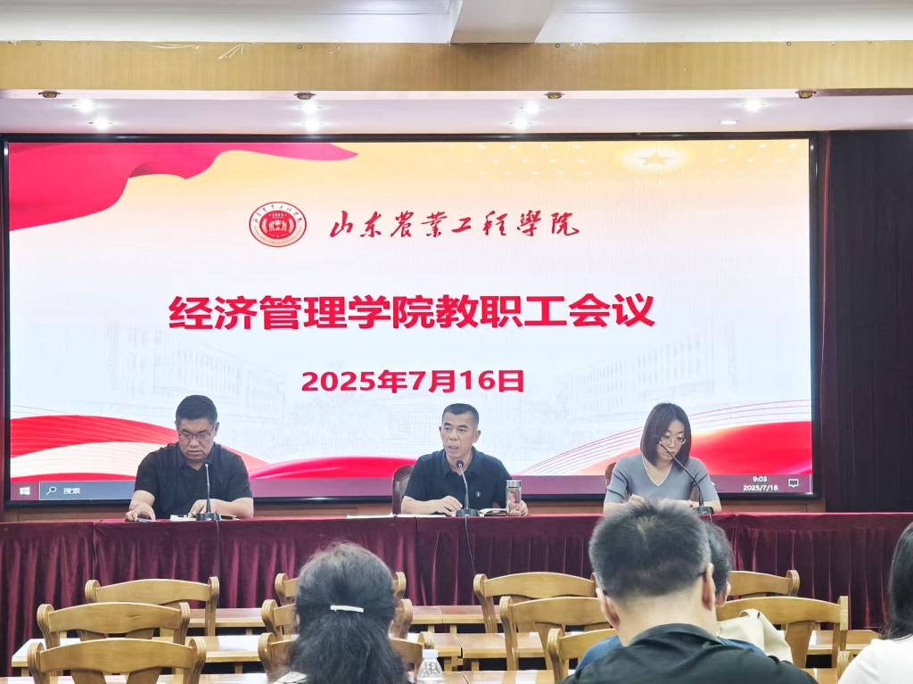 2025年7月16日上午,经济管理学院在济南校区多功能厅(1号教学楼506)召开全体教职工会议。会议由经济管理学院党总支书记马勇主持,学院全体教职工参加会议。