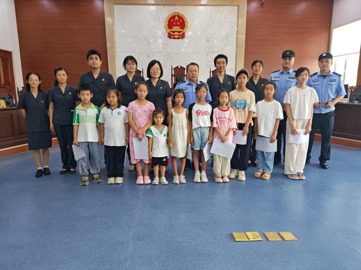 2025年7月18日,“青春行·中国梦”暑期支教团携手淄博市周村区大街街道长安社区走进淄博市周村区人民法院及辖区法庭,组织10名儿童开展法治宣讲和模拟法庭活动。此次活动旨在通过沉浸式法治体验,帮助儿童了解法律知识、增强法治观念,为孩子们的健康成长筑起法治防线。