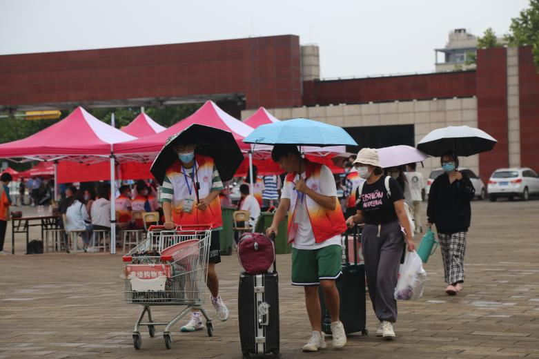 志愿者不惧风雨,任劳任怨,认真负责帮助新生搬运行李。良好的工作素养和态度使我院成为迎新工作中一道靓丽风景线。
