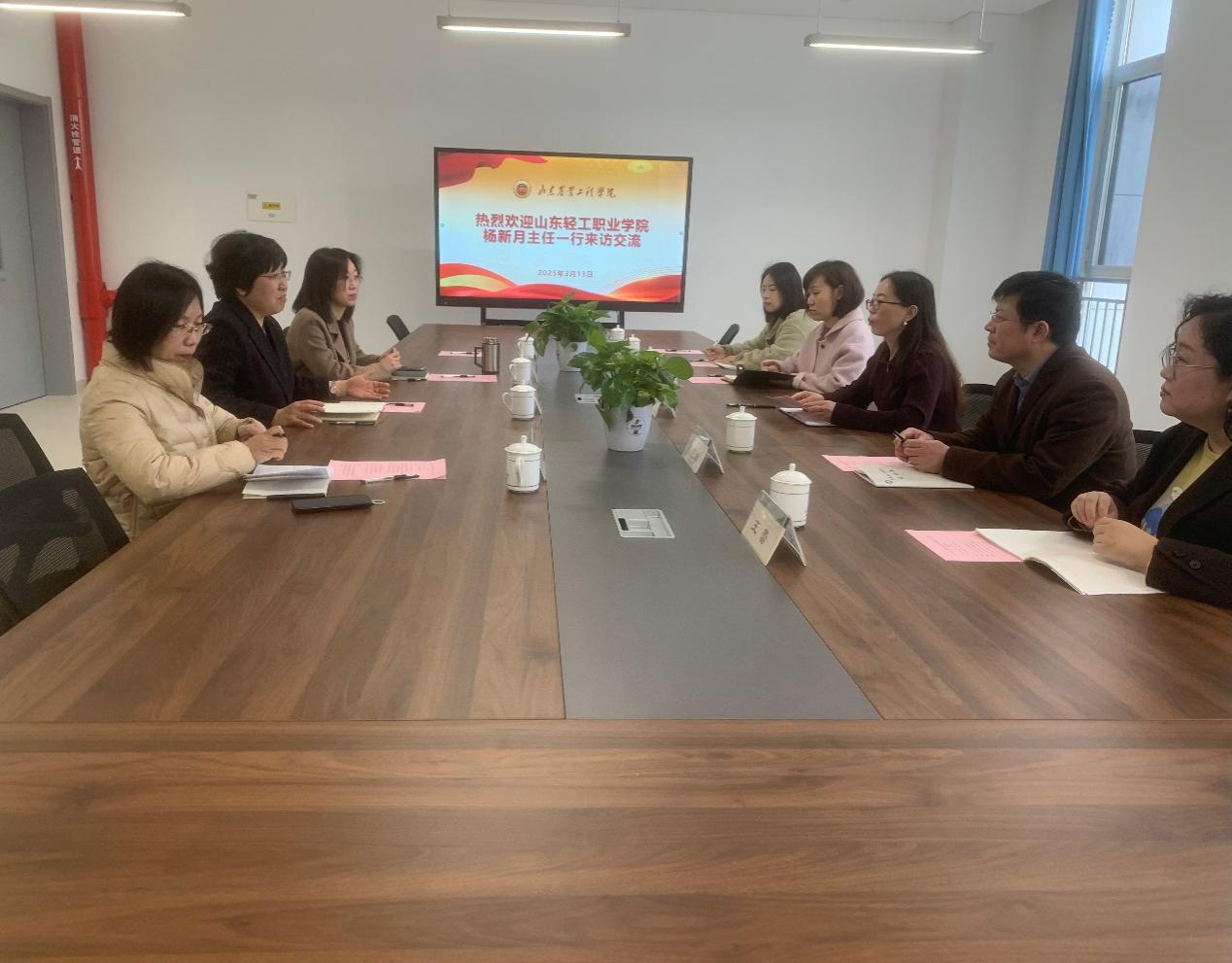 2025年3月13日,山东轻工职业学院商务贸易系主任杨新月一行赴bat365正版唯一官网经济管理学院开展座谈交流活动。经济管理学院院长李百秀、副院长曲文俏、物流教研室主任陈岱莲及相关教师出席座谈会。