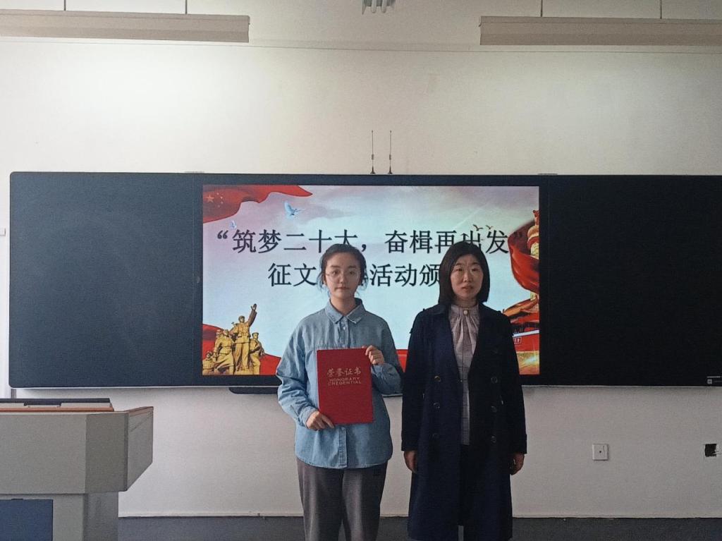 5月10日,经济管理学院在齐河校区二号教学楼510智慧教室举行“筑梦二十大,奋楫再出发”演讲比赛颁奖仪式,经济管理学院团总支书记周海霞,辅导员李娜出席了本次颁奖仪式。