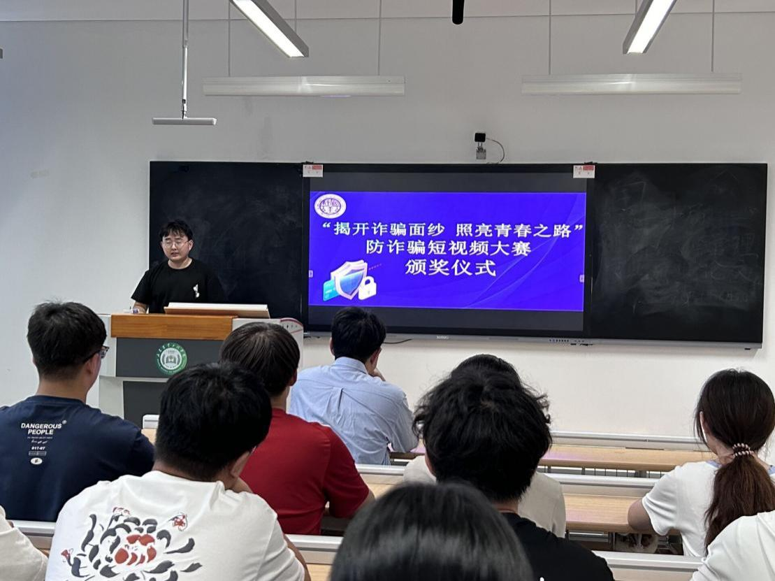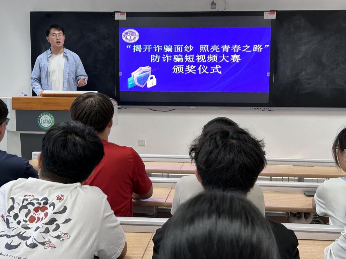 2024年6月14日,经济管理学院在文法西楼A312教室举行“揭开诈骗面纱,照亮青春之路”防诈骗短视频大赛颁奖仪式。辅导员王永瑞老师出席本次颁奖活动。