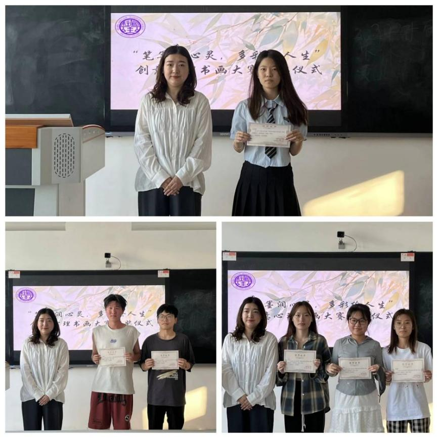 2024年6月3日下午,经济管理学院于文法西楼A312教室举行“笔墨润心灵,多彩绘人生”创意心理书画大赛颁奖仪式,我院政治辅导员张娟老师出席本次颁奖活动并为获奖同学颁发证书。