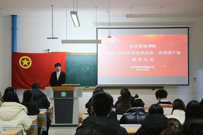 2024年12月17日,经济管理学院于文法西楼B105教室举办2023-2024学年优秀团员、优秀团干部颁奖仪式,我院思想政治辅导员李娜、侯沁菲出席此次颁奖仪式。