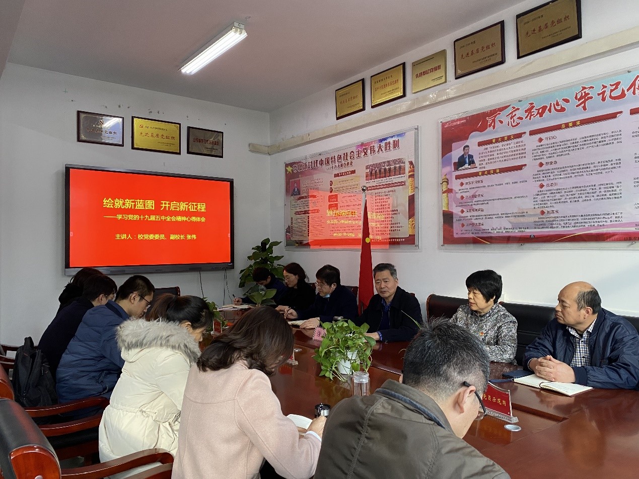 11月30日下午,经纬讲坛第五十一讲在济南校区开讲,校党委委员、副校长张伟以“绘就新蓝图 开启新征程”为主题宣讲党的十九届五中全会精神,校学生处、团委党支部和经济管理学院教工第一党支部全体党员聆听了宣讲会。