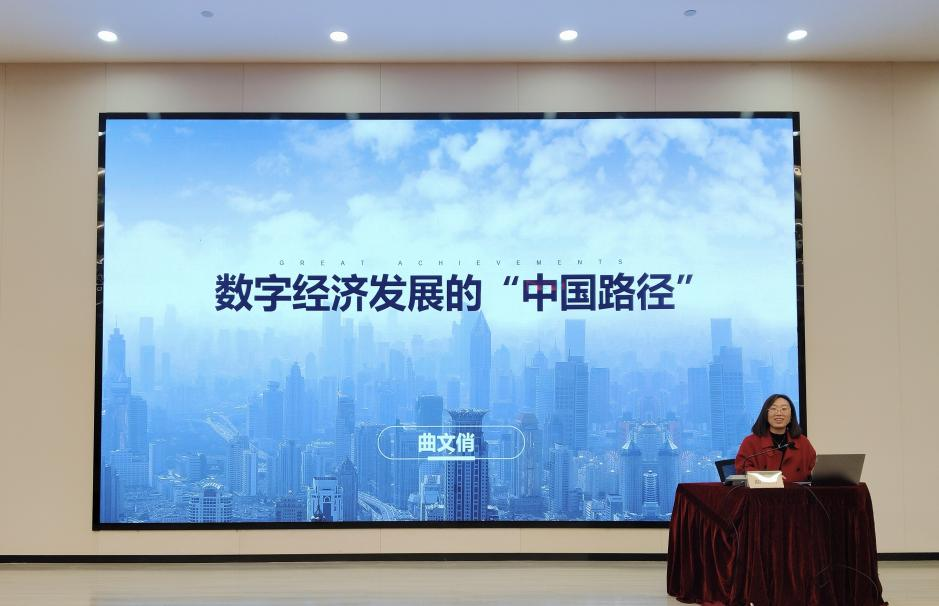 2024年12月10日下午,经济管理学院副院长曲文俏在文法西楼A104报告厅作了《数字经济发展的“中国路径”》专业讲座,24级数字经济专业、金融工程专业的学生聆听了本次讲座。