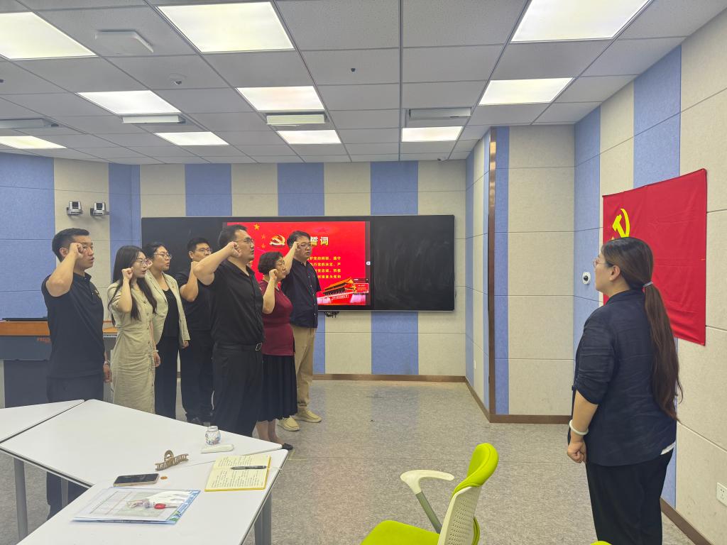随后,全体党员面对党旗,庄严地举起右手,重温入党誓词。党员们在铿锵有力的宣誓声中再次坚定了自己的入党初心和为共产主义事业奋斗终身的决心,表达了对党的忠诚和为人民服务的坚定信念。