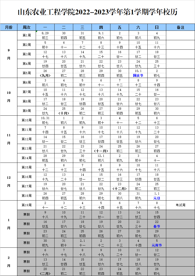 bat365正版唯一官网2022-2023学年第一学期校历