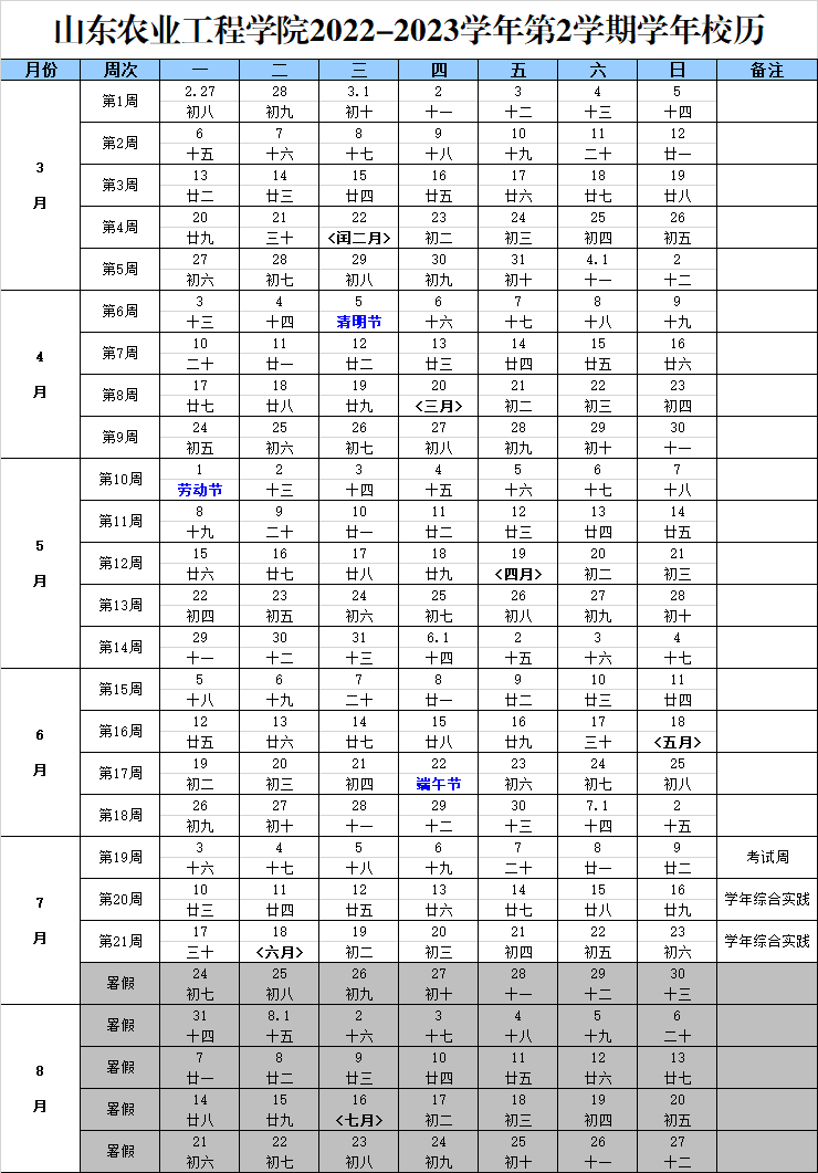bat365正版唯一官网2022-2023学年第二学期校历
