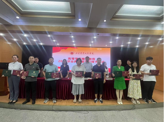 毕业典礼在雄壮的国歌声拉开帷幕,毕业生代表、教师代表分别进行了发言,继续教育学院院长刘庆涛为毕业生深情寄语:“同学们在工作与学习的双重压力下,始终保持着对知识的渴望和对进步的追求,用实际行动诠释了“学无止境”的深刻内涵”。他勉励毕业生以新学历为起点,在各自领域扬帆起航,勇敢追梦,不断超越自我,以奋斗之姿书写人生精彩华章。最后为毕业生代表颁发了毕业证书和学位证书。
