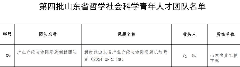 2024年9月30日,山东省社会科学界联合会办公室公布了“第四批山东省哲学社会科学青年人才团队”认定名单,bat365申报的“产业升级与协同发展创新团队”成功入选。