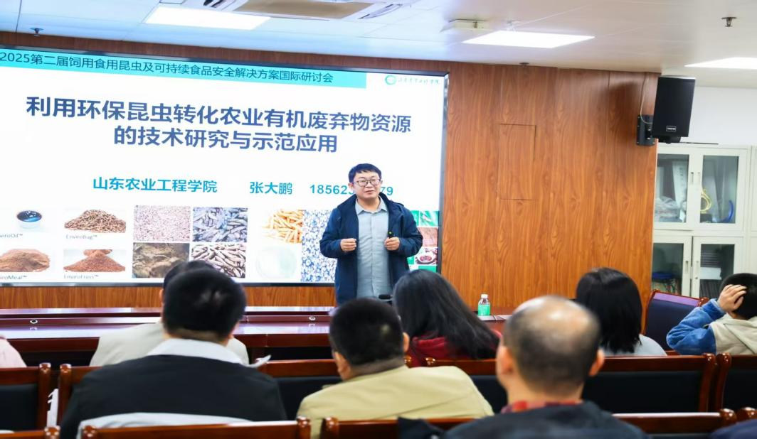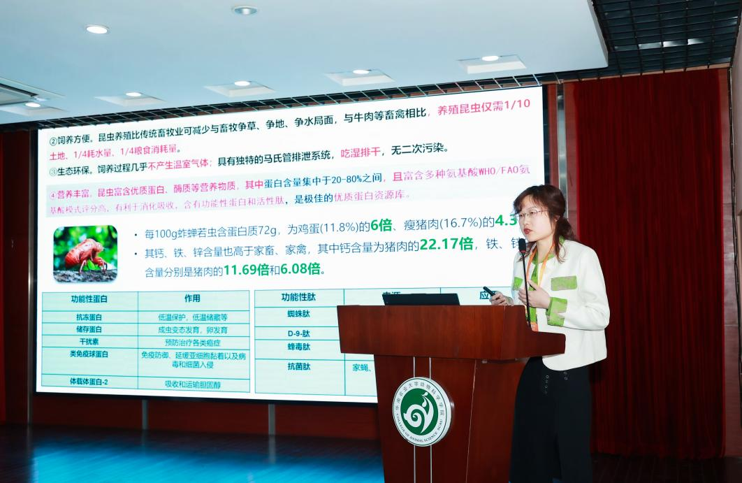 在“饲用、食用昆虫蛋白开发利用”分会场,迟晓君教授受邀作《黄粉虫蛋白资源研究进展》专题报告,系统阐述了食用昆虫作为新型蛋白源的环境效益与营养价值,并介绍了bat365科研团队在食用黄粉虫精深加工领域取得的技术突破;在“饲用、食用昆虫的高效饲养技术”分会场,张大鹏副教授受邀作《利用环保昆虫转化农业有机废弃物资源的技术研究与示范应用》报告,创新性提出“昆虫农业循环经济”模式,并详细介绍了团队在昆虫转化效率提升技术、智能化养殖管理系统等成果,为农业废弃物资源化利用提供了创新解决方案,获得与会专家的高度评价。