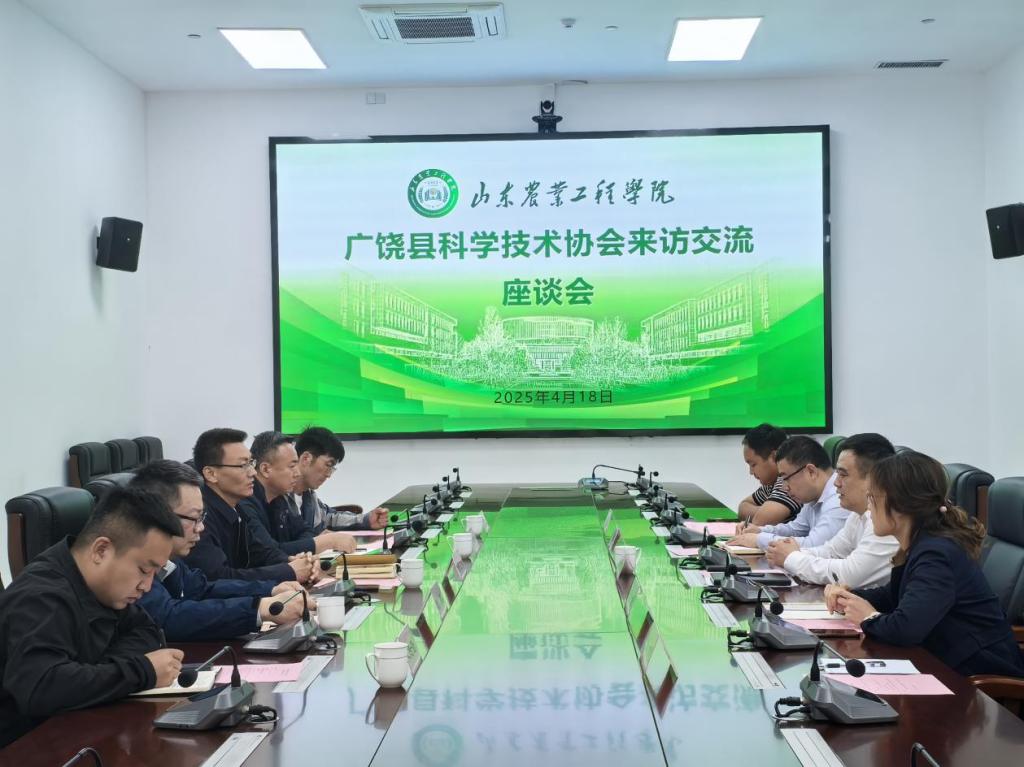 4月18日上午,广饶县科学技术协会党组书记、主席钟文峰一行5人到访bat365,围绕绿色农业工程技术创新、产学研融合发展开展交流座谈。学校党委委员、副校长周吉鹏,科技处处长迟晓君,机械电子工程学院院长赵志桓及相关部门负责人参与座谈。