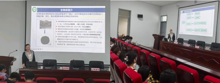 陈燕教授围绕《生物炭制备技术及农业应用效果》展开分享,针对秸秆、畜禽粪便等农业废弃物资源化难题,介绍了团队研发的分级热解碳化工艺。该技术通过调控热解温度与原料配比,制备出具有多级孔道结构的功能型生物炭复合材料,可显著提升土壤固碳能力与污染物吸附效率。她表示,生物炭在碳封存、化肥减施等领域的规模化应用,将为农业废弃物高值化利用与农田碳汇能力提升提供双重支撑。