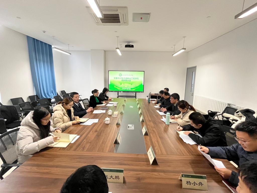 12月12日上午,校党委书记张鸿波来到林业工程学院调研指导学院各项工作开展情况。校党委委员、组织部部长韩娟、副部长王岑竹陪同开展调研,林业工程学院处级班子全体成员、各教研室主任以及教师代表参加调研座谈。