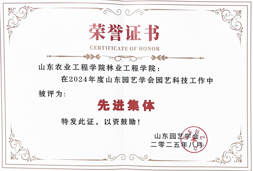 大会选举产生了山东园艺学会第十届理事会和监事会。我院束靖教授当选新一届理事会副理事长,刘锦副教授当选副秘书长,多名教授专家当选为常务理事、理事。最后,大会举行了隆重的颁奖仪式,我院荣获2024年度先进集体荣誉称号,王信宏副教授、张大鹏副教授荣获“优秀科普工作者”称号。