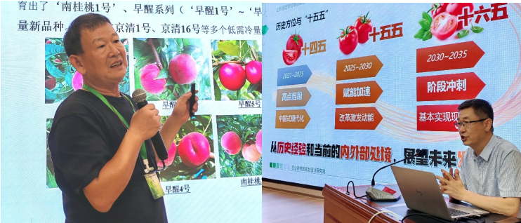 会议期间,中国工程院徐明岗院士、喻景权院士分别作特邀报告;国家现代桃产业技术体系首席科学家、北京市农林科学院研究员姜全,农业农村部规划设计研究院总工程师、研究员齐飞,中国农业科学院研究员刘凤之,南京农业大学教授房婉萍,中国苹果产业协会监事、研究员陈瑞剑分别作主旨报告,为与会代表奉献了一场精彩的学术盛宴。我院师生积极参与,围绕种质创新、生物技术、智能装备、绿色生产等关键议题展开深入学术交流。