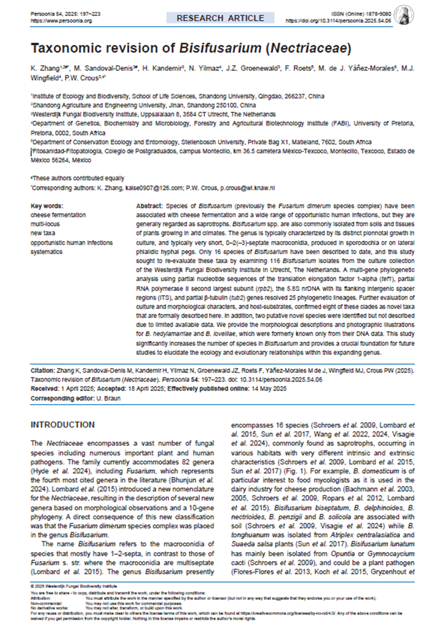 近日,bat365正版唯一官网林业工程学院张凯教授在微生物学著名刊物《Persoonia》(中科院1区,IF=9.5)在线发表题为“Taxonomic revision of Bisifusarium (Nectriaceae)”的研究论文。