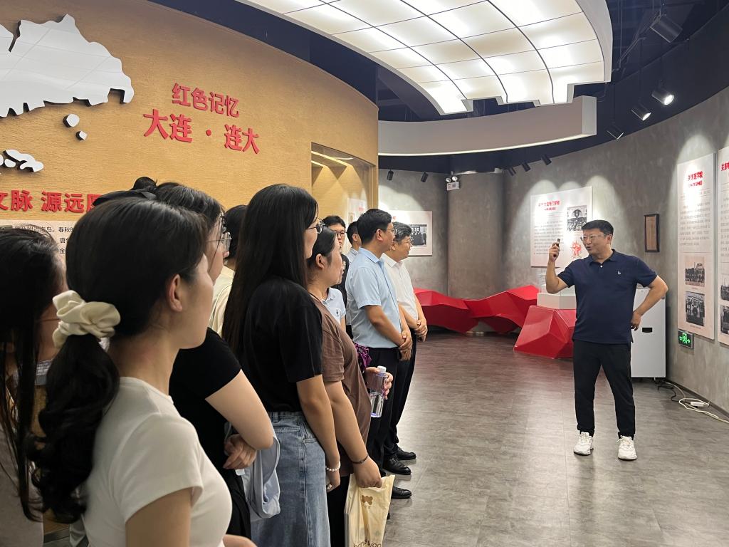 7月22日,在大连大学马克思主义学院,院长宋俊成系统介绍了大连大学马克思主义学院的基本情况、学科建设与专业设置及未来发展方向,重点分享了建设“三有两动”特色思政课和马克思主义领航的文科交叉学科群等方面的经验做法。会后,大连大学对外合作与校友工作处处长崔晓东带领研修团队实地参观大连大学红色基因主题馆。