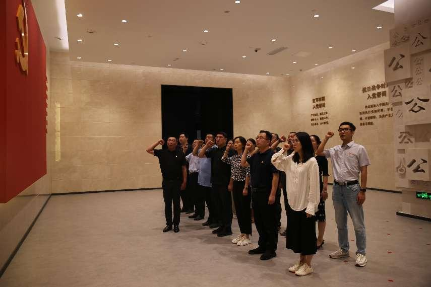 在宣誓厅,面对鲜红的党旗,全体党员庄严宣誓,重温入党誓词,牢记共产党员的初心使命,进一步树牢了为共产主义奋斗终身的坚定信念。