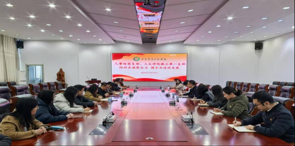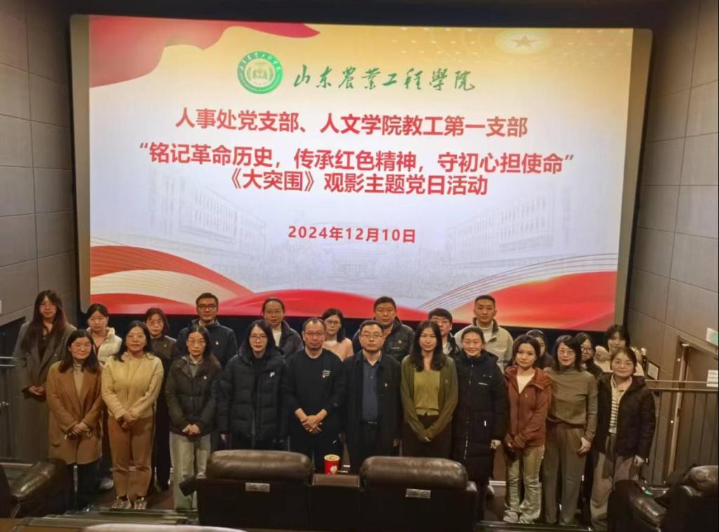 为实现党支部间优势互补,以党建为引领,聚合力促发展,努力构建党建工作新格局,2024年12月10日人事处党支部、人文学院教工第一党支部党建结对共建,共同开展“铭记革命历史,传承红色精神,守初心担使命”主题党日活动。本次活动分为座谈会和观影两部分,共20位党员同志参加。