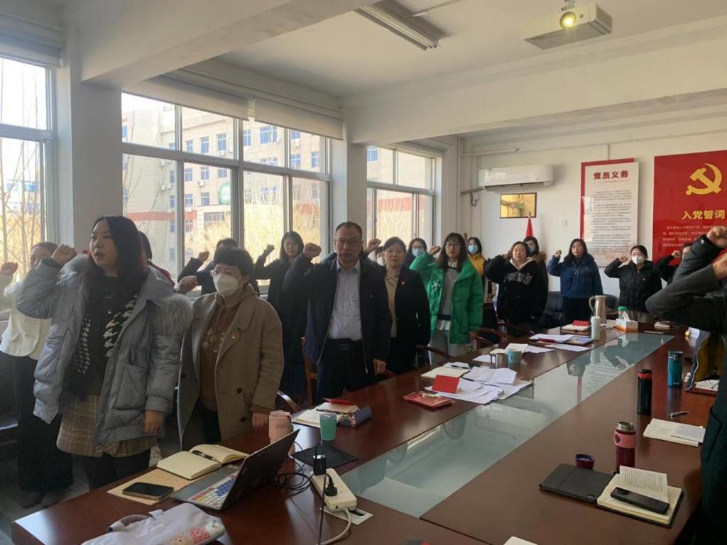 分享学习体会后,全体党员面向党旗重温入党誓词,大家激情澎湃,精神昂扬。一句句铿锵有力的入党宣誓,让党员们重温了入党时的郑重承诺和坚定决心。