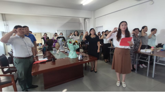 活动在王院长祝大家教师节快乐的热烈掌声中开启。与会教职工通过学校官方微博观看了直播。随后,全体与会教师面向国旗,举起右拳,进行了庄严的教师宣誓。
