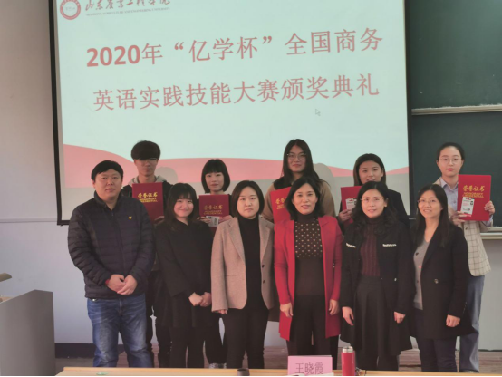 指导老师嵇琳在颁奖典礼中向大家介绍了“亿学杯”全国商务英语实践技能大赛的相关事宜,并回顾了参赛选手们的精彩表现。大会上,院长王晓霞、教师代表为获奖同学颁奖。