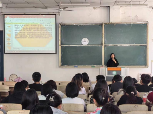 为鼓励我院商务英语专业学生利用课余时间积极参加专业相关证件考试,积极备战专业相关比赛,培养更多有家国情怀、有全球视野、有专业本领的高水平国际化人才,4月12日,商务英语教研室蔡鸿雁、刘蕾两位老师面向全体商务英语专业学生,举办了“证赛结合强本领”专题讲座。