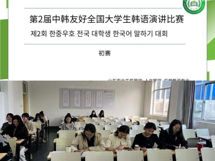 为增强学生的跨文化交际意识、开拓国际视野、提高韩国语应用能力及思辨能力,近日,我院应用韩语专业以“第二届中韩友好全国大学生韩语演讲比赛”参赛选手选拔为契机,举办了初赛选拔活动。2022级应用韩语专业部分同学参加了此次选拔活动,韩国语教研室四位教师担任评委。