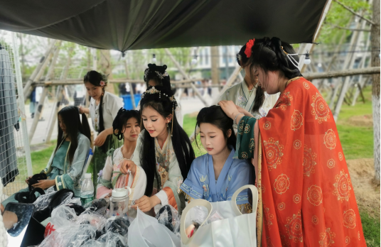 开幕式后,师生们兴致盎然地展开了游园活动。在异彩纷呈的国风活动中穿越古今,体味古人的智慧与雅趣,共赴了一场花香与国风华丽碰撞的文化之旅。
