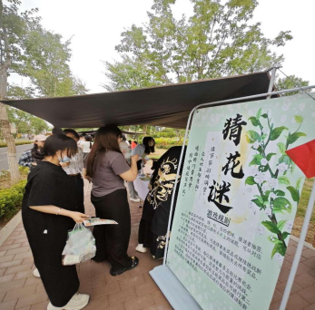 活动还设置了“品茗亭”,将花卉与茶叶有机融合,在桂、兰、茉、菊的香气中徜徉;“糕点斋”停放着荷花糕、桂花糕、绿茶酥,莲子绿豆糕等茶点,秀色可餐可观,让师生深深感受中华饮食文化的源远流长与博大精深。