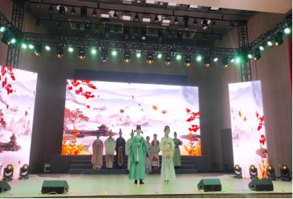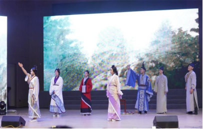 随后,人文学院师生倾心打造的汉服礼仪表演、农事诗会展演拉开了首场演出的帷幕。汉服礼仪表演,以时代为序,将不同时期的服饰与礼仪相结合,通过仪态展示、吟诗唱和、长袖翩舞,充分展现中国传统服饰之美与古人雅趣。