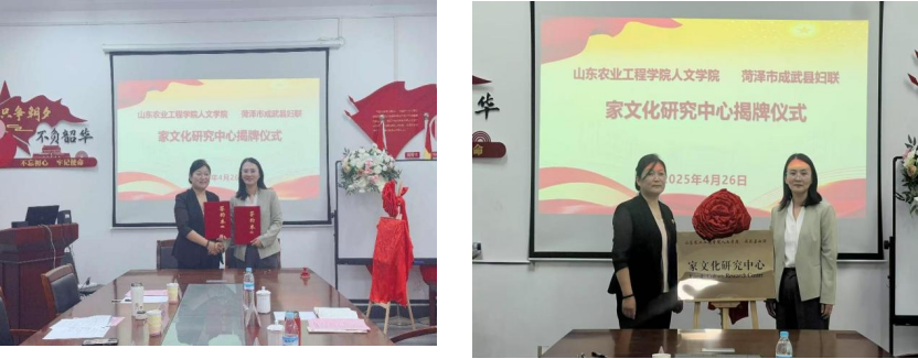 田晓兰主席、高千秋院长共同签署了双方合作意向书,并为bat365正版唯一官网人文学院与成武县妇联家文化研究中心揭牌。