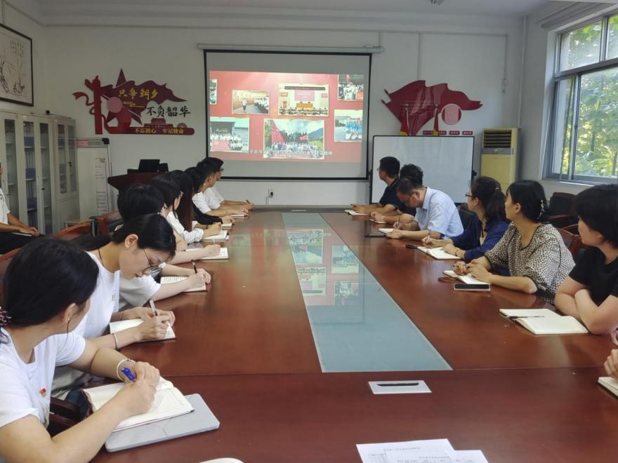 在新中国成立75 周年即将到来之际,为激发和展示高校广大师生奋进强国新征程的强大力量,9月4日下午,人文学院党总支组织师生党员代表,在党建活动室集体观看高校党组织示范微党课——《坚持教育科技人才“三位一体”,奋力谱写中国式现代化宏伟篇章》。