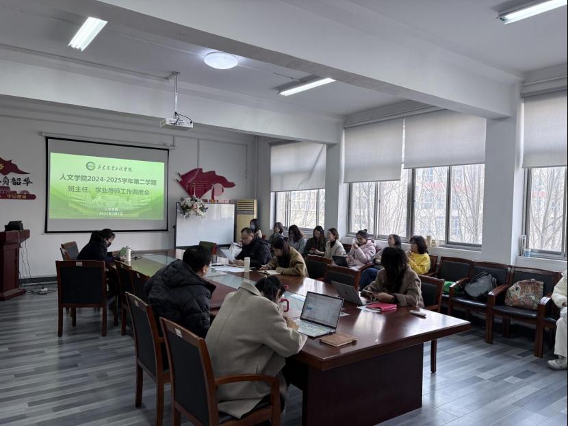 为全面落实立德树人根本任务,深化全员育人、全过程育人、全方位育人机制,近日,人文学院在3教202召开2024-2025学年第二学期班主任、学业导师工作调度会。党总支书记王纪、党总支副书记戎芸婷、全体班主任、学业导师及辅导员代表参会,共同谋划新学期学生管理与学业发展工作新篇章。