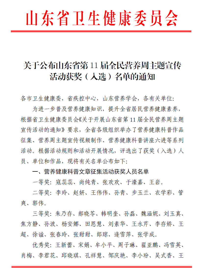 - 我院在山东省第11届全民营养周主题宣传活动中荣获… 08-21